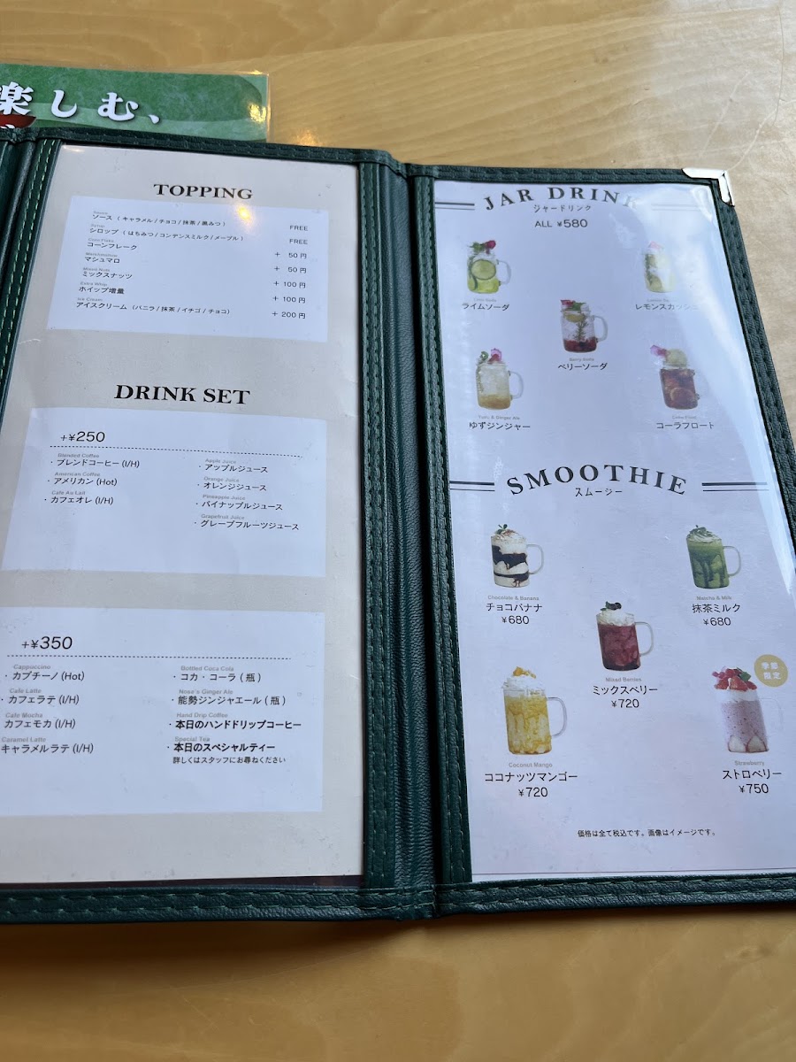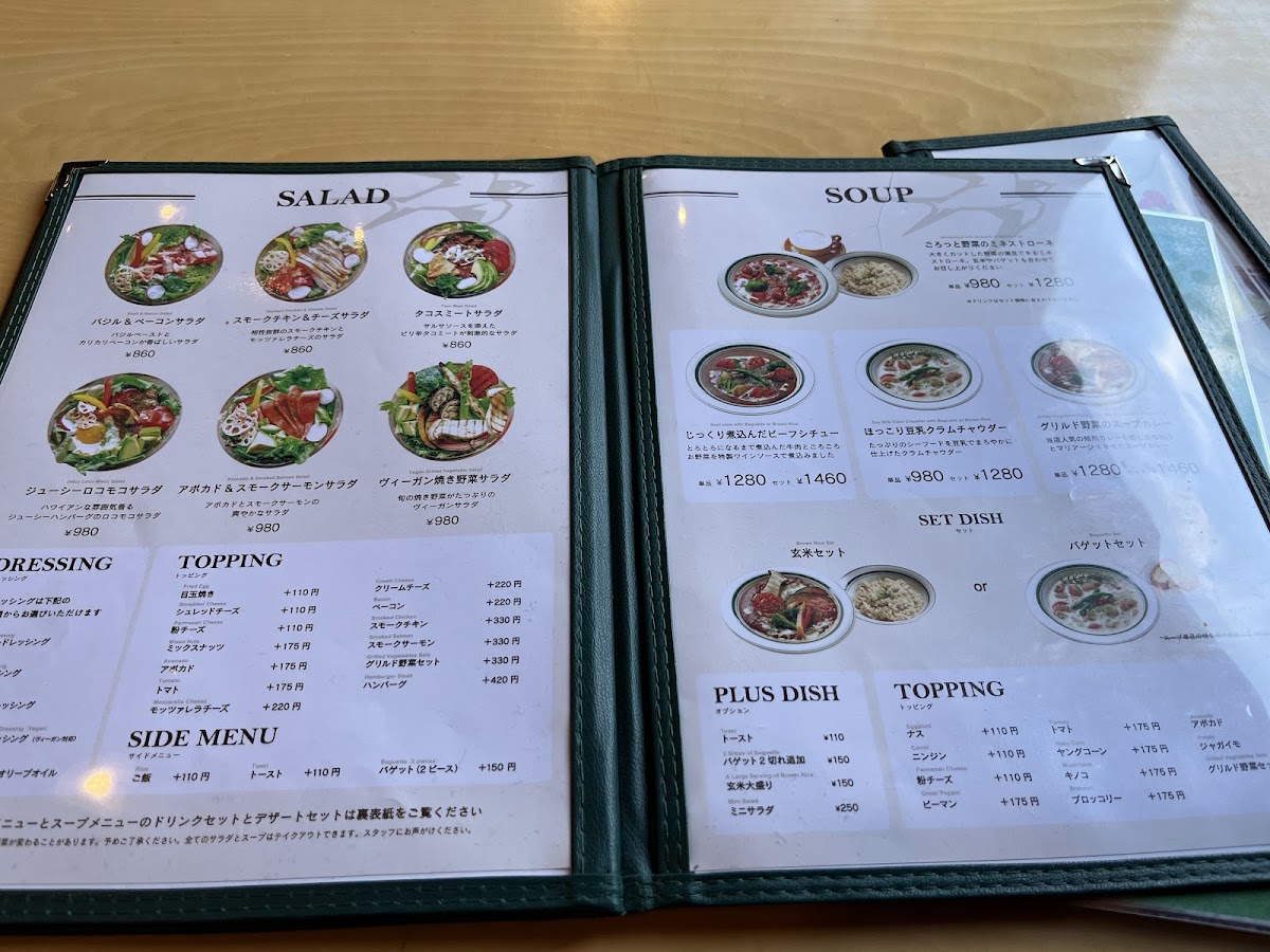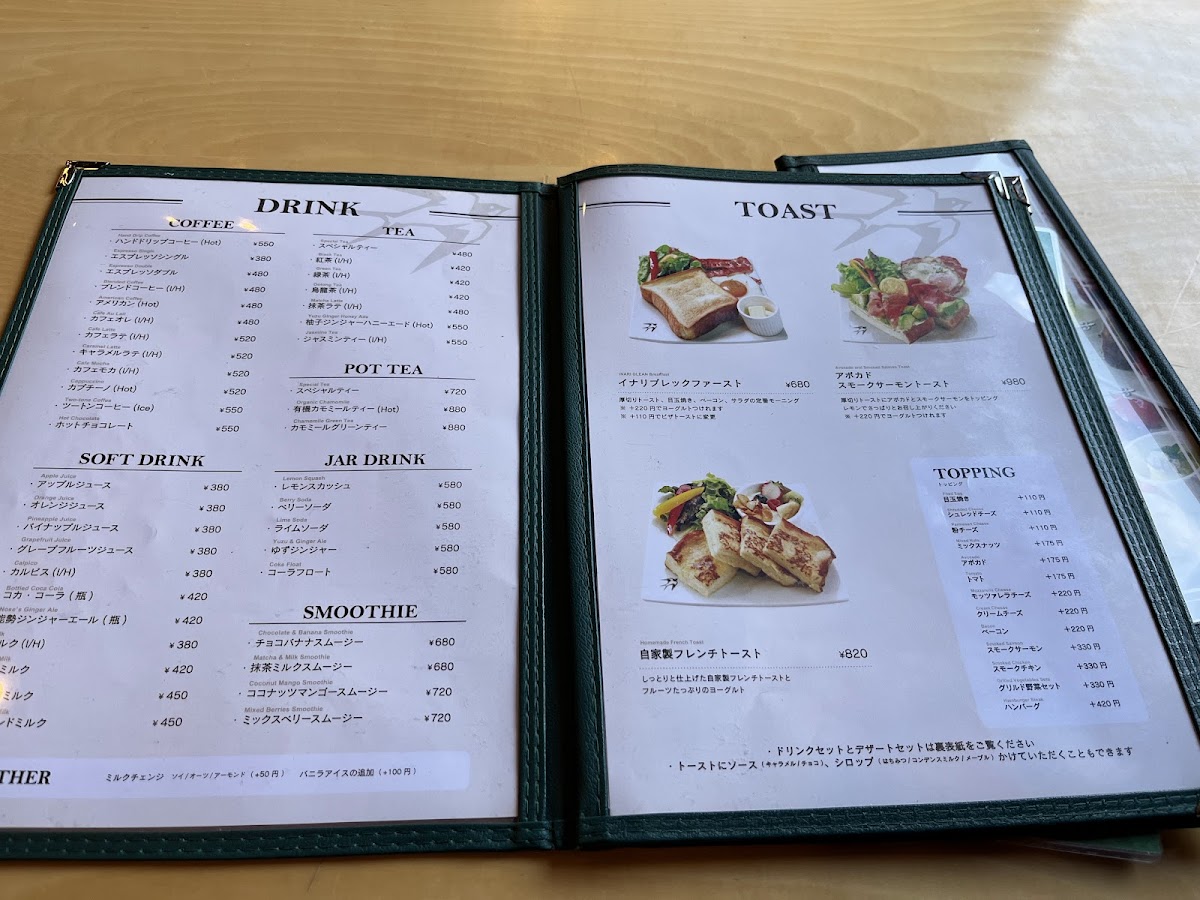 The drink offerings include hand-drip coffee starting at JP¥550, as well as refreshing seasonal specialties like the strawberry smoothie for JP¥750. Pair your beverage with a savory basil and bacon salad priced at JP¥860, or indulge in their hearty clam chowder and cheese curry.